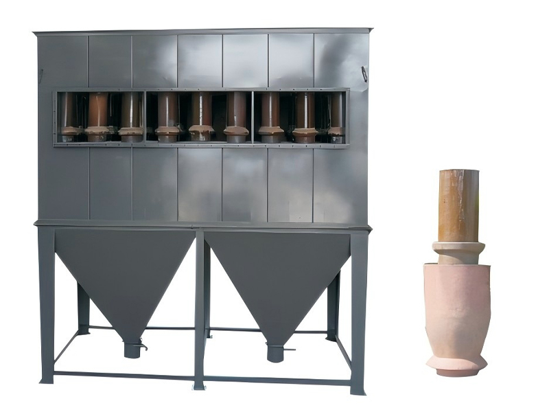 تتميز الأنبوبة الخزفية بقطر 290 مم بأن قسم الفصل الإعصاري فيها ذو بنية متكاملة محكمة الإغلاق، مما يتغلب على عيوب البنية متعددة الأقسام، المعرضة لتسرب الهواء والتي تؤثر على كفاءة إزالة الغبار. في أسفل الأنبوبة الإعصارية، تم اعتماد قاعدة متسعة ورأس إدخال مخروطي، مما يسهل توصيلها بقادوس الرماد السفلي. توجد فتحات تهوية متعددة على السطح المحيطي للقاعدة المتسعة، مما يمنع تشقق أنبوبة تجميع الغبار الإعصارية الخزفية أثناء عملية الحرق، ويحسن من إنتاجية التصنيع.